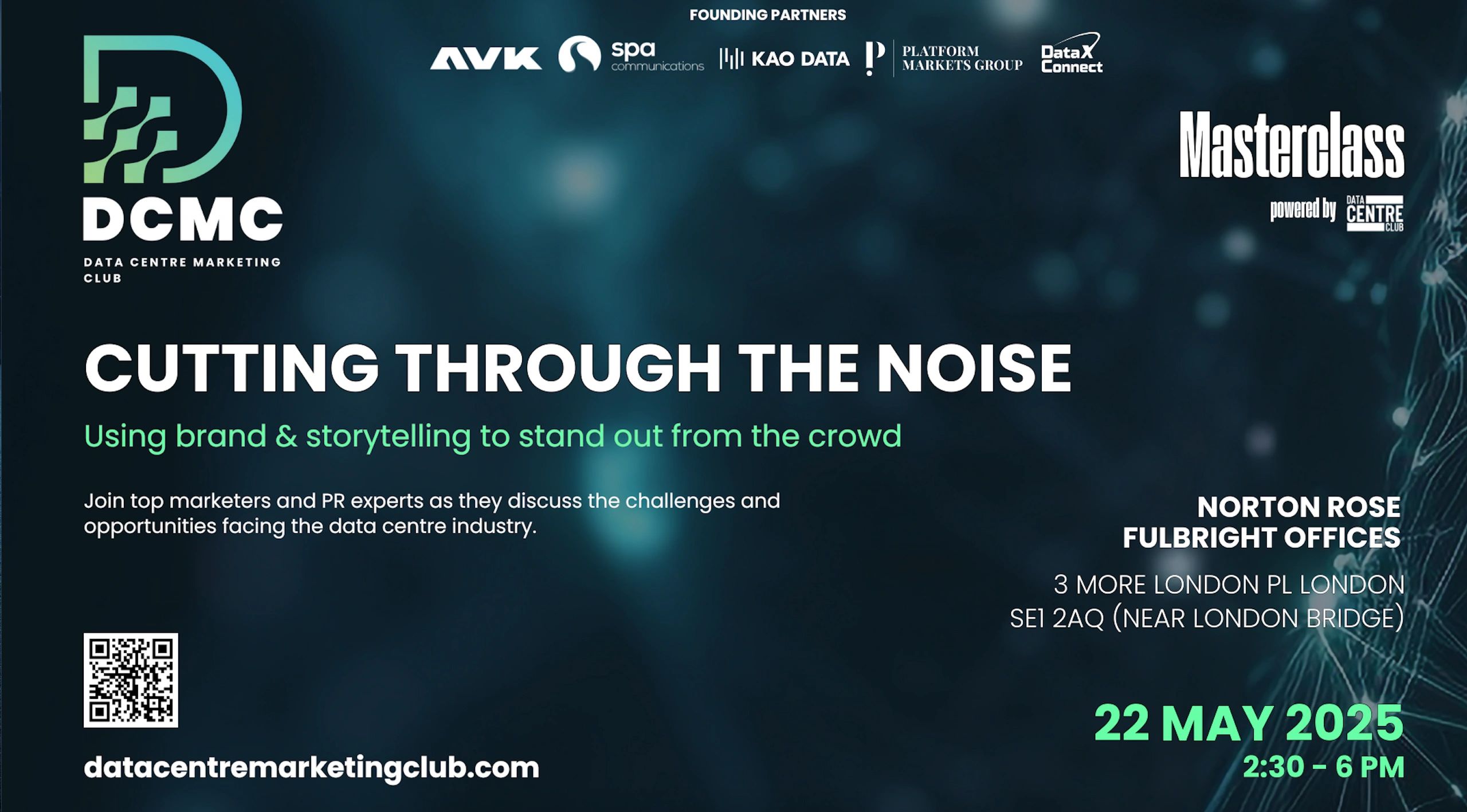 On the 22nd May 2025, the Data Centre Marketing Club hosts its first, free-to-attend Masterclass event, ‘Cutting Through the Noise’, at legal firm Norton Rose Fullbright – exploring the critical role of brand in business growth, and how marketers can accelerate impact by delivering a joined-up approach to sales, marketing and communications strategies.